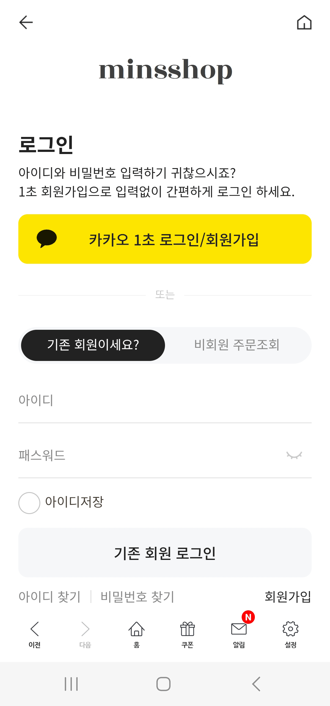 - **앱 실행 및 이용:** 설치가 완료되면 스마트폰 홈 화면 또는 앱 서랍에 생성된 ‘민스샵’ 앱 아이콘을 터치하여 앱을 실행합니다. 최초 실행 시 필요한 접근 권한(예: 알림, 사진 등)을 허용하고, 기존 회원은 로그인, 신규 회원은 회원가입 절차를 거쳐 민스샵의 모든 쇼핑 기능을 이용할 수 있습니다.