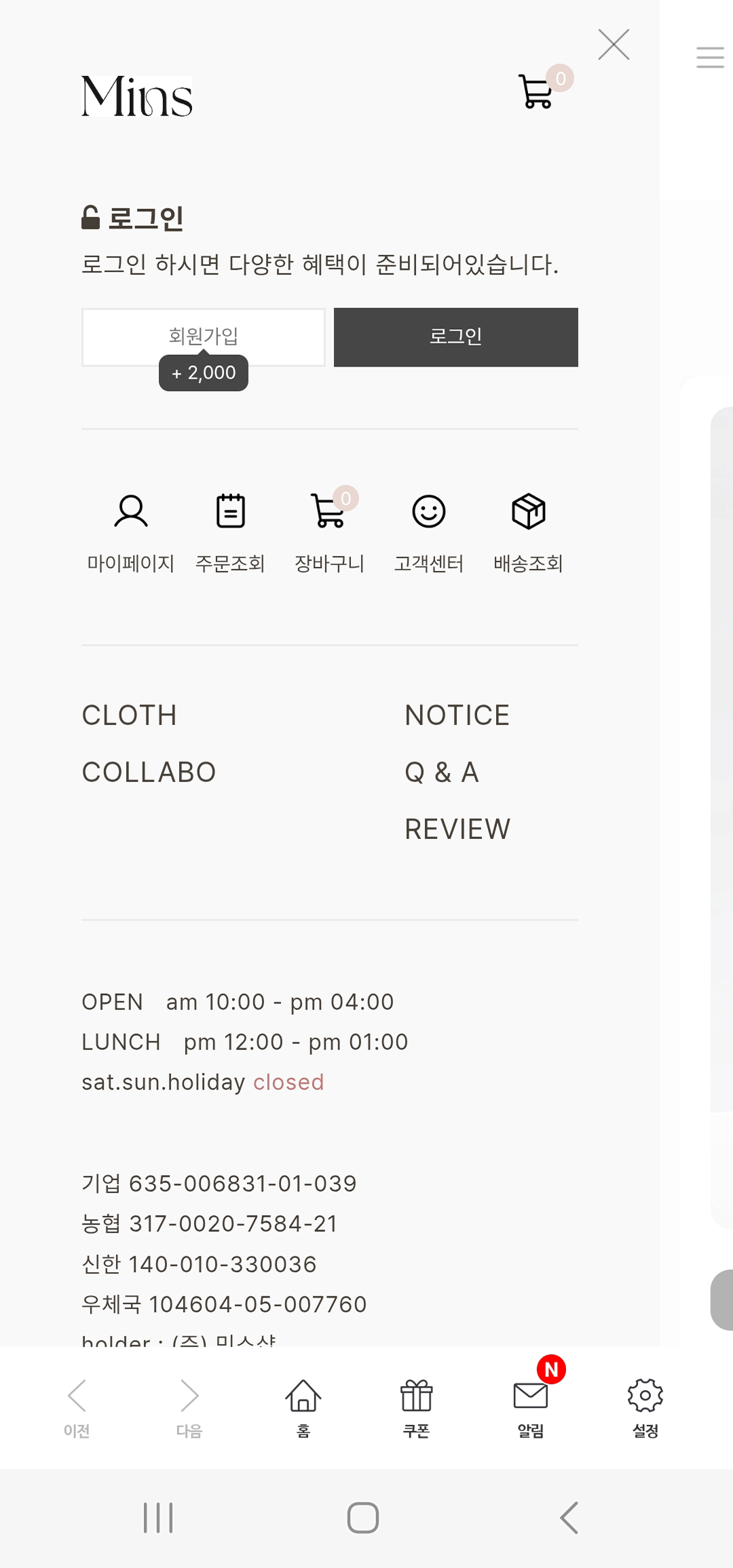 | 홈페이지 | http://www.minsshop.co.kr |